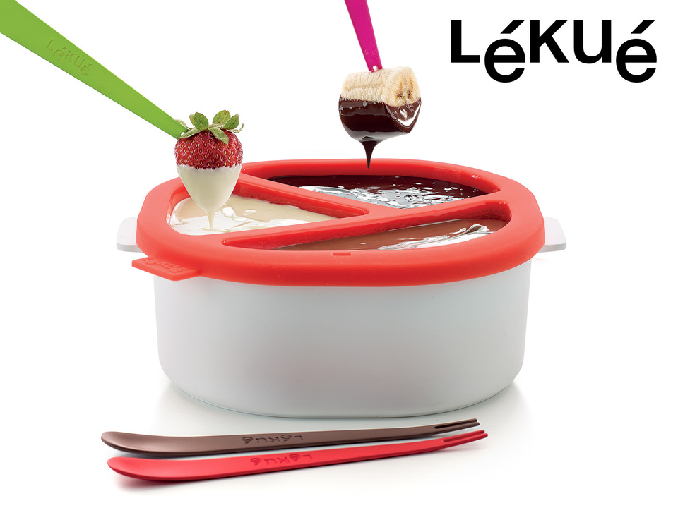 Chokladfondue är ren eufori för gottegrisar! Känslan av att doppa små jordgubbar och kiwibitar och brödbitar och ananas och mmm … fantastiskt.Detta chokladfondue-set är superfiffigt: du kör det nämligen i mikrovågsugnen! Fyll plastbasen med vatten, sätt i silikonformen och lägg choklad i de tre facken. Kör i mikron 2-4 minuter och ta-daa! Nu har du chokladfondue som håller sig flytande en hel timme. Det är bara att doppa tills du blir helt sockerrusig!Ta chansen att experimentera med olika sorters choklad, både mörk och vit fungerar! Prova också att lägga i till exempel Werthers för en karamellig känsla, eller varför inte myntablad? Eller korv!Fakta om Chokladfondue Set – LékuéSmidigt set för att göra chokladfondue hemma i mikrovågsugnen!Modellbeteckning: Lékué ChocoFondueVarje fack rymmer ca 75-125 gram chokladTotal kapacitet: 600 mlBPA-fri plastRecept och instruktioner medföljer (engelska)Fyra spett i olika färger medföljerMått: 7 x 19 x 16,5 cm